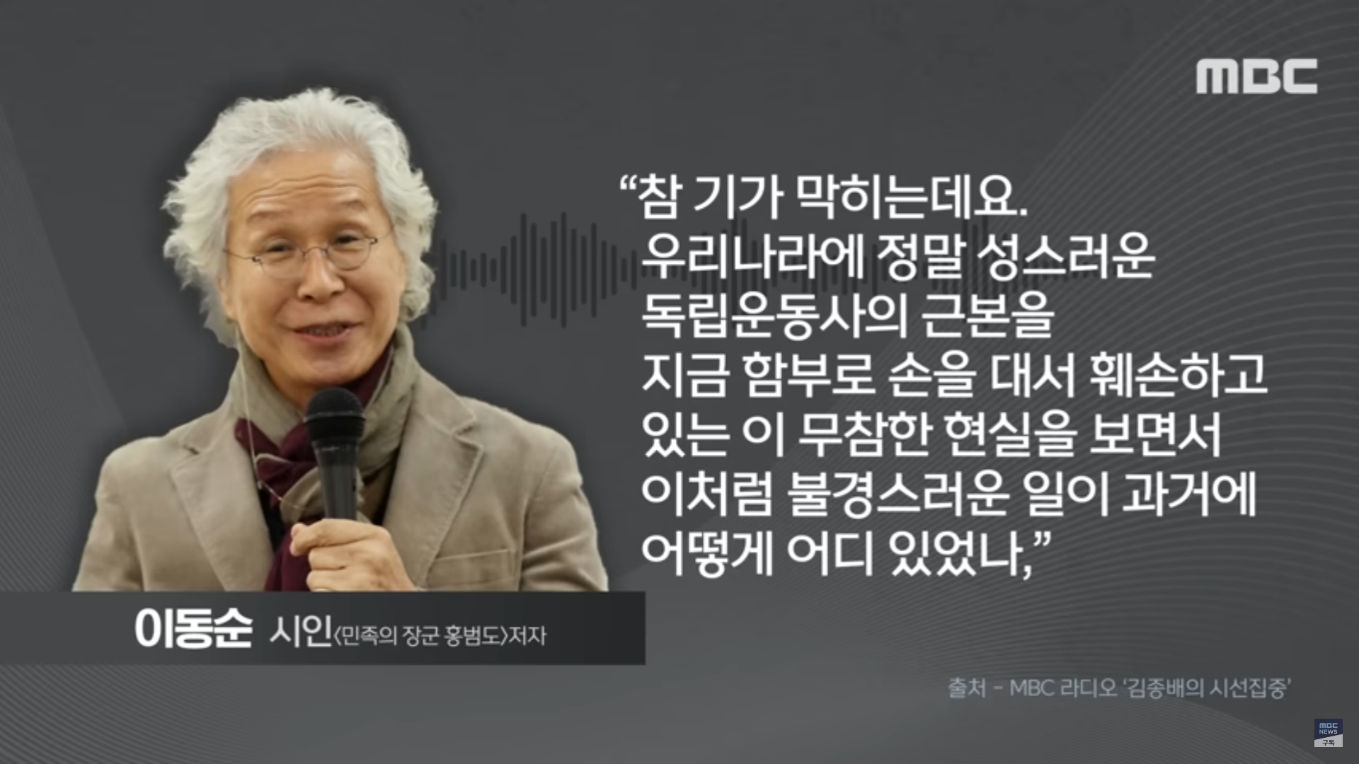 민족의 장군 홍범도의 저자 이동순 시인은 인터뷰에서